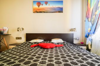 Наши 1-х комнатные апартаменты подходят для проживания 2 гостей. В спальной комнате расположена двуспальная кровать king-size с ортопедическим матрацем и качественным дорогим постельным бельем. Есть телевизор со SMART TV.