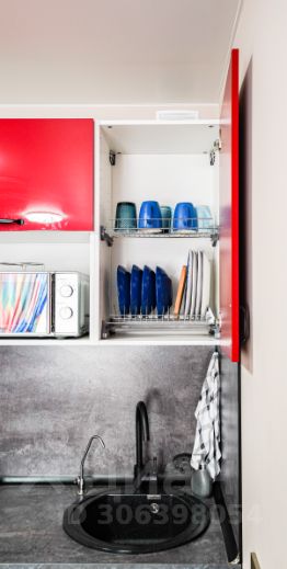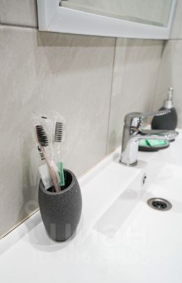 В зоне кухни вся необходимая для проживания техника и посуда: варочная панель, микроволновая печь, чайник, фильтр с питьевой водой.