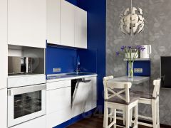 полноценная кухня с зоной готовки и качественной бытовой техникой (холодильник, варочная панель с духовкой, СВЧ-печь, электрический чайник, посудомоечная и сушильная машина);