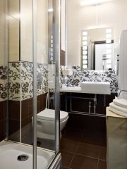 собственная ванная комната с душевой кабиной и стиральной машиной;