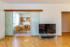 Дом кирпичный," сталинка"- 1958 г.п. Квартира двусторонняя, расположена на 2 этаже, 7-ми эт. дома. Вид из гостиной и кухонной зоны на Московский парк Победы, спальная комната-вид во двор. Квартира меблированная, есть гардеробная, санузел раздельный, просторная гостиная и компактное кухонное пространство зонировано от гостиной раздвижными из сверхпрочного стекла дверьми. В гостиной выделено место под деловую рабочую, кабинетную зону и большое пространство для отдыха. Затонированные в светлых тонах раздвижные двери, светлый тон стен и общее пространство гостиной без лишней мебели и дополнительных дверей создает легкость, гармонию в сочетании с пейзажным видом на парк. Спальная комната, санузел, гардеробная в светлых природных тонах.