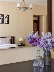 - Отдельная комната с двумя большими двуспальными кроватями king-size 160х200 с ортопедическим матрасом. Спальные места зонированы и разделены перегородкой.