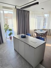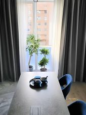 Планировка: кухня-гостиная с обеденной зоной, спальня с двуспальной кроватью, постирочная и две мокрые зоны с душевой и ванной. В квартире есть вся необходимая мебель и техника для комфортного проживания (кондиционер, бризер, стиральная машина, сушильная машина, посудомоечная машина, микроволновка, духовой шкаф). Проведено обслуживание всех технических устройств. Из приятных бонусов в квартире имеется винный шкаф, камин с обогревом и профессиональная кофемашина. Территория комплекса закрыта и охраняется. Есть возможность парковки автомобиля во дворе. В квартире сделана шумоизоляция потолков и имеется большой застеклённый балкон с зоной хранения. Ниже этажом соседей нет, находится техническое помещение. Рядом множество магазинов, кафе и коммерческих помещений. До метро пешком 5 минут.