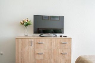 В прихожей есть гардеробная комната, где Вы можете разместить свои вещи. Также в ней хранятся фен, утюг, гладильная доска, напольная сушилка для одежды.