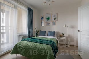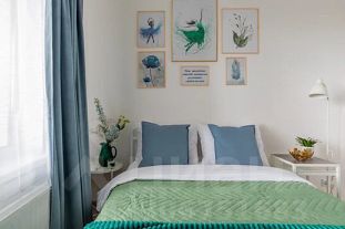 В спальной зоне Вас ждёт кровать с комфортным пружинным матрасом (размер спального места 140*200), шелковистым бельём страйп-сатин, подушками средней высоты. У кровати стоят многофункциональные прикроватные столики. У одного из них столешница становится подносом. Второй можно использовать как рабочее место. С двух сторон от кровати расположены розетки. Для создания более уютной атмосферы мы поставили у кровати торшер, Вы всегда сможете выключить свет не вставая с постели.