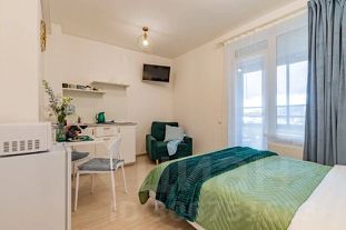 Кухня оборудована всем необходимым - индукционная варочная панель на 2 конфорки, холодильник с морозилкой, микроволновая печь, мойка с сушилкой для посуды. Посуда для приготовления блюд включает абсолютно новые кастрюли, сковороды, тёрку, дуршлаг, лопатки и прочие мелочи. Для сервировки стола есть идеально белый сервиз на троих человек. Уже сейчас Вас ждёт приветственный набор специй, кофе, чай, сахар!