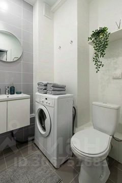 Еще одна гордость этой квартиры - ванная комната с полноценной ванной. В душевой зоне есть дозаторы мыла, шампуня и кондиционера для волос. Зеркало расположено над подвесной тумбочкой с магнитными дверцами. На раковине стоит полностью заправленный дозатор мыла, стаканчик для щёток и мыльница. В шкафчик убран фен. Вместе с арендой квартиры Вы получаете комплект полотенец (140*70, 90*40, и небольшое для рук).