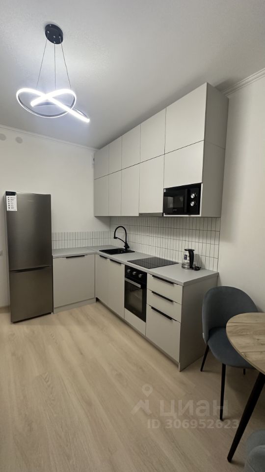 • Кухня со встроенной техникой: посудомоечная машина, плита, вытяжка, духовой шкаф, холодильник, чайник, микроволновая печь, стиральная машина.