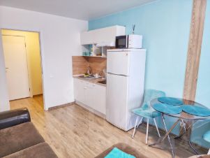 Квартира с евроремонтом, светлая и современная. В студии есть вся необходимая мебель: удобные спальные места кровать и диван, кухня, холодильник, обеденный стол, стулья, шкафы для хранения, телевизор, интернет, гладильная доска, сушилка для белья.