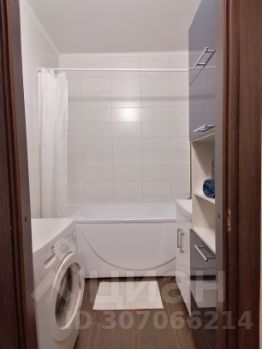 В ванной комнате установлена стиральная машина.