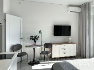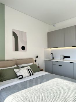 Современная студия с дизайнерским ремонтом мебелью и техникой в новом доме. Потолки высокие 2,85м.