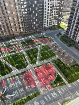 Просторный вид из окна. Отличная детская площадка внизу. Закрытый двор без машин. Парковка многоуровневая бесплатная.