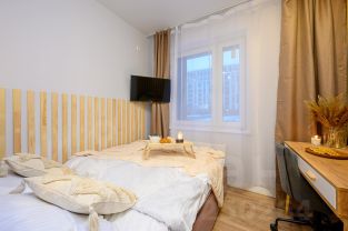 Квартира укомплектована всем необходимым: стиральная машина, электрическая плита, холодильник, посуда, мебель и т.д. В стоимость входит бесплатный интернет.