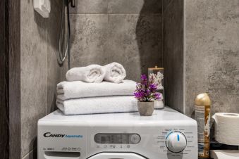 -Полноценной кухней, оборудованной всей необходимой техникой, включая кофемашину, микроволновую печь, всю необходимую посуду для приготовления любимых блюд и сервировки, посудомоечной машиной;