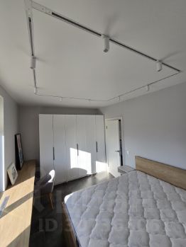 Просторная спальня оборудована двуспальной кроватью, напольным зеркалом, вместительным 6-ти створчатым шкафом, интегрированным с подоконником рабочим столом прикраватными тумбами, креслом.