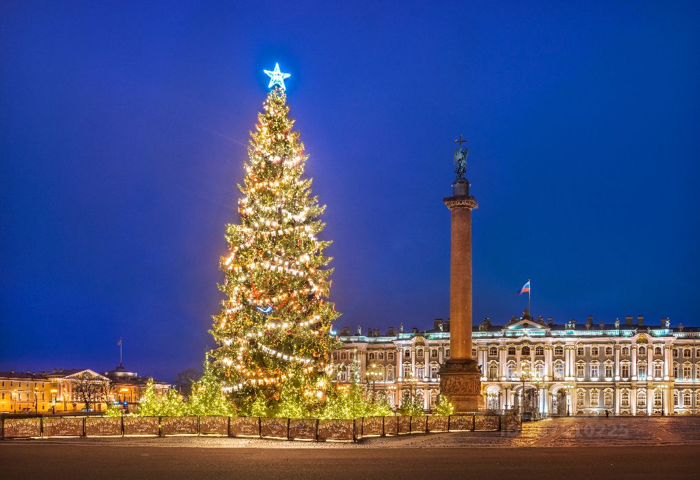 • Дворцовая площадь. Здесь устанавливается главная ёлка города, проходят концерты и представления. Можно прокатиться в празднично украшенной карете.