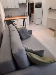 В квартире сделан качественный евро- ремонт с элементами дизайна. Полы- ламинат и керамогранит, сан. Узел в кафеле, с душевой кабиной, раковиной, зеркалом, стиральной машиной- автомат. В коридоре- вешалка, зеркало, шкаф, отделение для обуви. Роутер WI-FI.