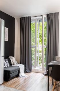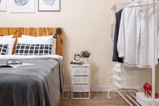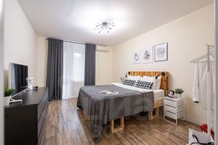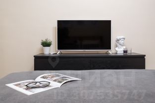 Двуспальная кровать 160*200 и новый диван, шкаф большой в прихожей + рейл в комнате + комод(при необходимости можно установить еще один рейл), кондиционер, WI-FI, современный ТВ и пр.