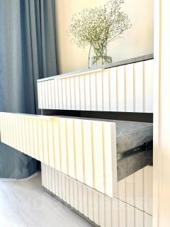 кровать шириной 140 см с пружинным матрасом средней жесткости, вместительный шкаф для одежды со штангой, комод, кухонный стол со стульями, кухонный гарнитур со столешницей 240 см и вместительными шкафами, укомплектованный духовым шкафом, варочный поверхностью, вытяжкой, есть фильтр для воды. Вся техника и мебель новая. Для комфортного сна холодильник расположен в коридоре. При желании его можно поставить в комнату, есть свободное место. Есть стиральная машинка с удобными программами стирки. В ванной комнате установлен теплый пол, есть полотенцесушитель. В коридоре есть зеркало с отображением в полный рост, обувница и вешалка для одежды. Окна студии выходят на юго-запад, благодаря этому в студии много света. Из лоджии открывается потрясающий вид на Юнтоловский заказник, Финский залив и Газпром башню. В квартире есть wi-fi, гладильная доска, сушилка для белья, стремянка.