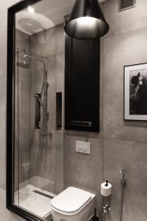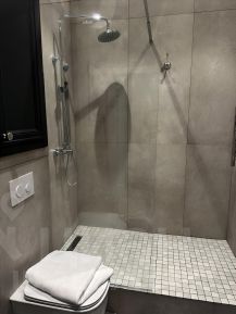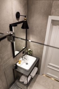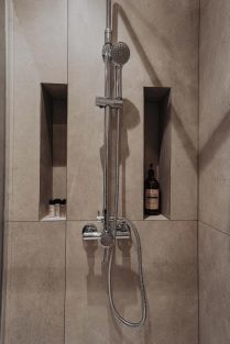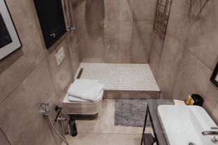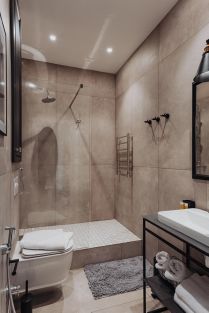 - Ванная комната с душем и всеми необходимыми косметическими принадлежностями, включая фен, полотенца.