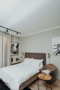 - Комфортабельные спальные места: двуспальная кровать, ортопедический матрац;