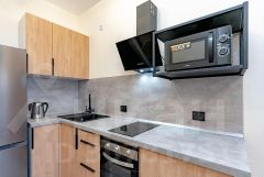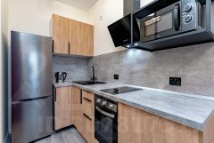 Бытовая техника: варочная панель на 2 конфорки, духовой шкаф, микроволновка, вытяжка, холодильник, электрический чайник, пылесос