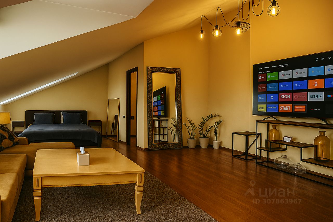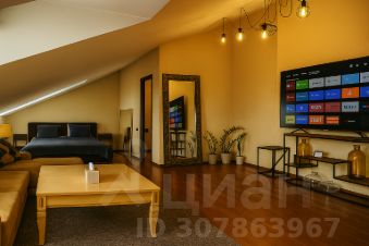 Роскошная двухкомнатная мансарда (нестандартная планировка — обе комнаты проходные, но между ними есть двери и кровати в каждой) в доме-памятнике на набережной Невы.