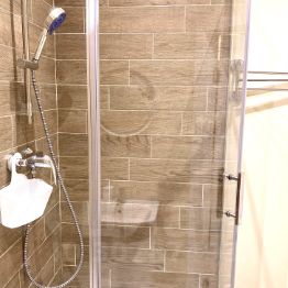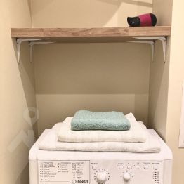 Ванная комната: душ, стиральная машина, полотенца, гигиенические средства