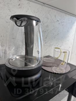 Техника: варочная панель, микроволновая печь, чайник, холодильник, стиральная машина, телевизор.