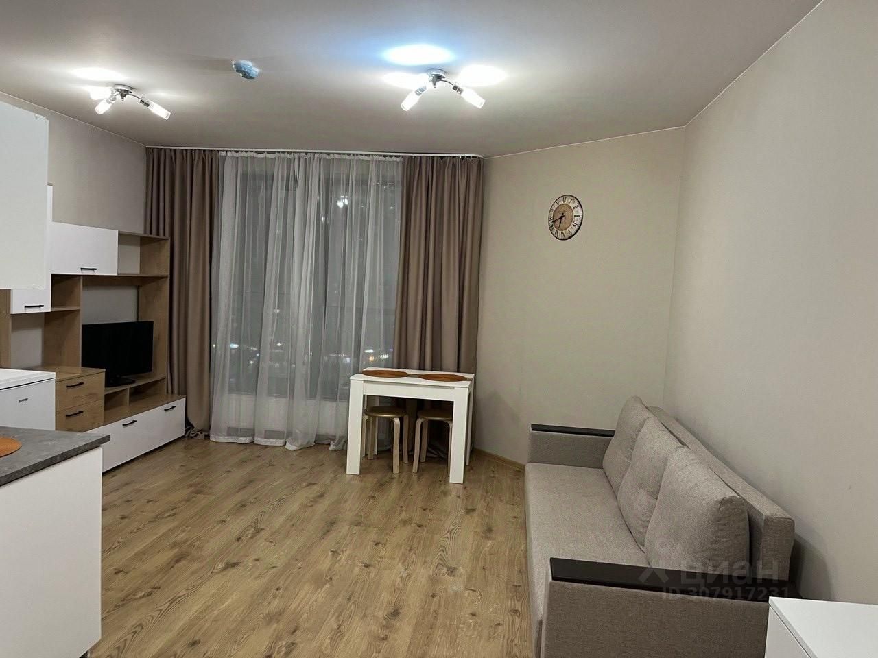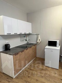 Студия с евроремонтом, полностью меблирована и готова к проживанию. В квартире есть вся необходимая техника: холодильник, телевизор, стиральная машина, микроволновка, чайник, утюг, роутер. Кухня и комната обставлены современной мебелью, поэтому можно сразу заехать и жить без дополнительных затрат. Совмещённый санузел оборудован душевой кабиной.
