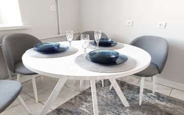 Для комфортного отдыха двуспальная кровать Икея 160см с ортопедическим матрасом высотой 30см , диван Аскона, большой смартТВ 130см, Wi-Fi. В кухне газплита с большой духовкой 60см, тихая стирально-сушильная машина, посудомоечная машина, холодильник, микроволновка, вся необходимая посуда, утюг, гладильная доска, фен. Есть кондиционер.