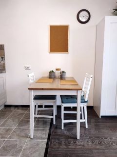 Имеется кофемашина, плита, сушилка, утюг, стиральная машина и прочие радости быта.