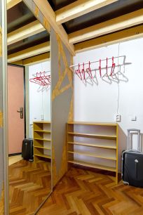 - Двуспальная кровать, диван, односпальная кровать и на втором ярусе двуспальный матрас