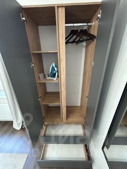 Предусмотрены зоны для хранения-вместительный шкаф в прихожей и платяной шкаф в комнате.