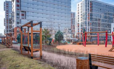 Просторные детские площадки во дворе (закрытые от посторонних и автомобилей дворы с чудесным выбором детских площадок)!