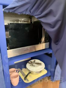 Кухня со всем необходимым микроволновка, чайник, холодильник.