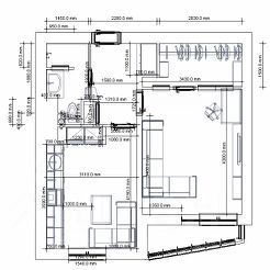 Кухня-гостиная (18м) решает вопрос с уединением, когда никто никому не мешает и занимается своими делами.