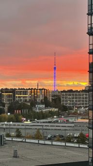 Из окон обзор на очень красивые закаты на фоне телебашни, хорошо видны салюты, можно разглядеть Петропавловскую крепость :)