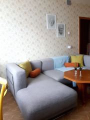 В квартире сделан современный евроремонт. Уютная кухня площадью 9 кв. м оснащена всей необходимой мебелью и техникой: холодильник, телевизор и стиральная машина. В комнатах также есть мебель, поэтому можно сразу заселиться, не думая о дополнительных покупках. Ванная комната оборудована ванной, санузел раздельный. Из окон открывается вид как на улицу, так и во двор, а на лоджии можно наслаждаться свежим воздухом.