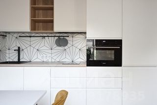 Ультрасовременная и стильная кухня с встроенной бытовой техникой. А также - микроволновая печь, капельная кофеварка, холодильник и другие удобства.
