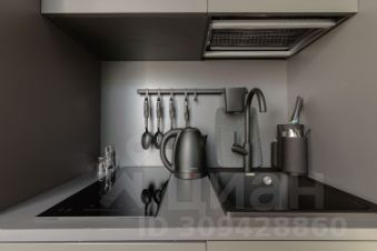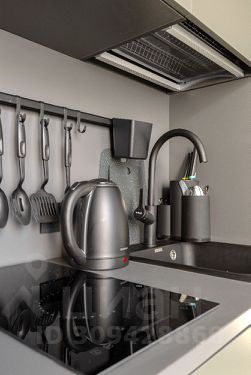 • Кухонный гарнитур, pакoвинa, индукционная плита, xoлодильник, микроволновая печь, электрический чайник, столовые приборы и посуда.