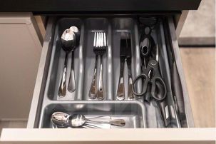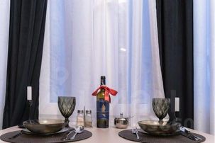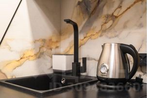 — Оборудованная кухня с посудой, столовыми приборами и встроенной техникой (микроволновая печь, чайник, холодильник, электрическая варочная панель)