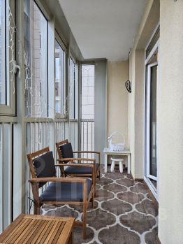 В квартире сделан качественный ремонт "под себя" по евростандарту и современным тенденциям дизайна. На полу уложена высококлассная паркетная доска, стены покрашены особыми экологичными красками приятных оттенков. В спальне очень комфортная кровать, фирмы Estetica, сделанная под заказ. Так же в спальне находится система хранения во всю стену, спрятанная за шторами. Отдельно есть гардеробная комнатка.