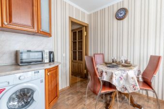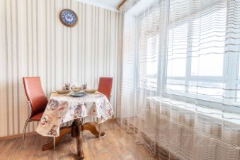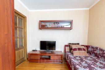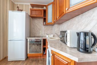 В квартире есть всё необходимое для комфортного проживания. В комнате и на кухне имеется вся необходимая мебель. Квартира оснащена современной техникой: холодильник, телевизор, стиральная машина. Также есть балкон, где открывается прекрасный вид на город.