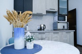 Кухонный уголок полностью оборудован всем необходимым для приготовления вкусных блюд — от бытовой техники до посуды.С заботой о вас есть велком набор из чая, кофе, сахара и специй.