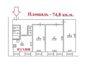 Большая кухня 9.8м2, и три отдельные комнаты 17 + 13.4 + 13.3м2. Раздельный санузел, ванная. Много мест для хранения одежды/вещей.