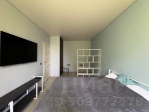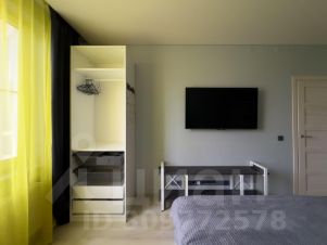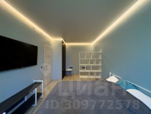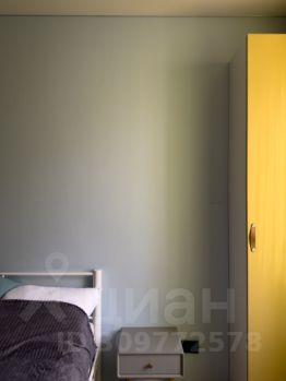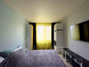 5. Жилая комната поделенная на две зоны - рабочую и для проживания, рабочая зона это пустая ниша, туда встанет например стол 200 см, разделяет её стеллаж. Есть кровать с матрасом средней жесткости, прикроватные красивые тумбы и два шкафа. Напротив кровати висит большой телевизор Xiaomy, внизу очень много розеток.