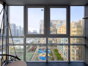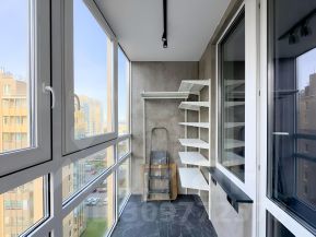 4. Утепленная лоджия с панорамным остеклением. Есть теплые полы, сделаны дополнительные открытые места хранения, верхний свет и подвесное кресло.
