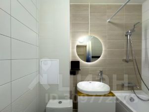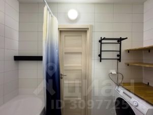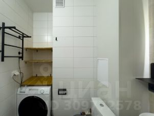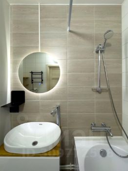 2. По правую руку находится совмещенный санузел с большой ванной и качественной сантехникой Groe, круглое зеркало с подсветкой, стиральная машина Haier, полотенцесушитель, есть инвентарь для уборки. В санузле теплые полы!