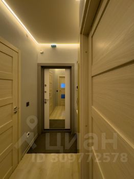 1. При входе вы попадаете в закрытый коридор с шкафом обувницей и шкафом для верхней одежды, есть роутер и видеодомофон. Функцию люстры выполняет контурная подсветка, такая же сделана в комнате и на кухне.
